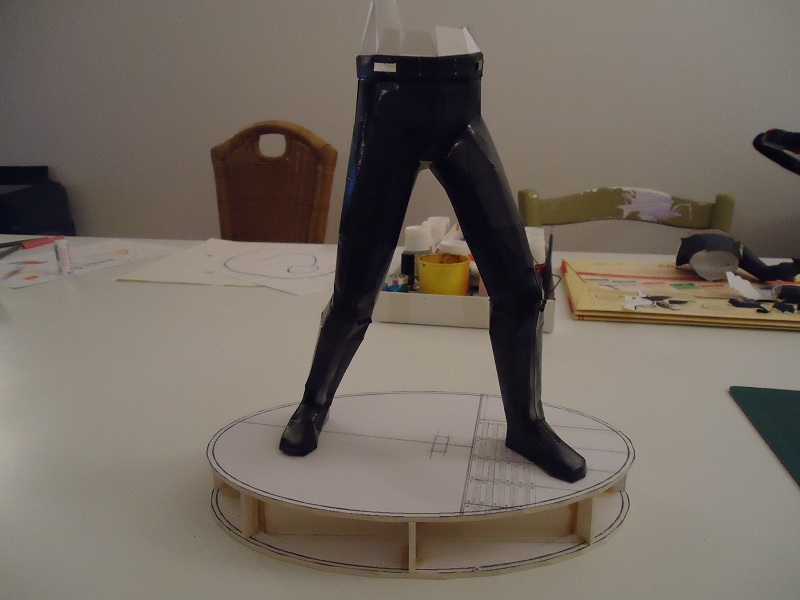 Voici la suite, le bas du modèle, vernis et glacé à la résine. Le socle travaillé, évidé pour le matériel électrique et une ébauche de motif du sol du modèle.