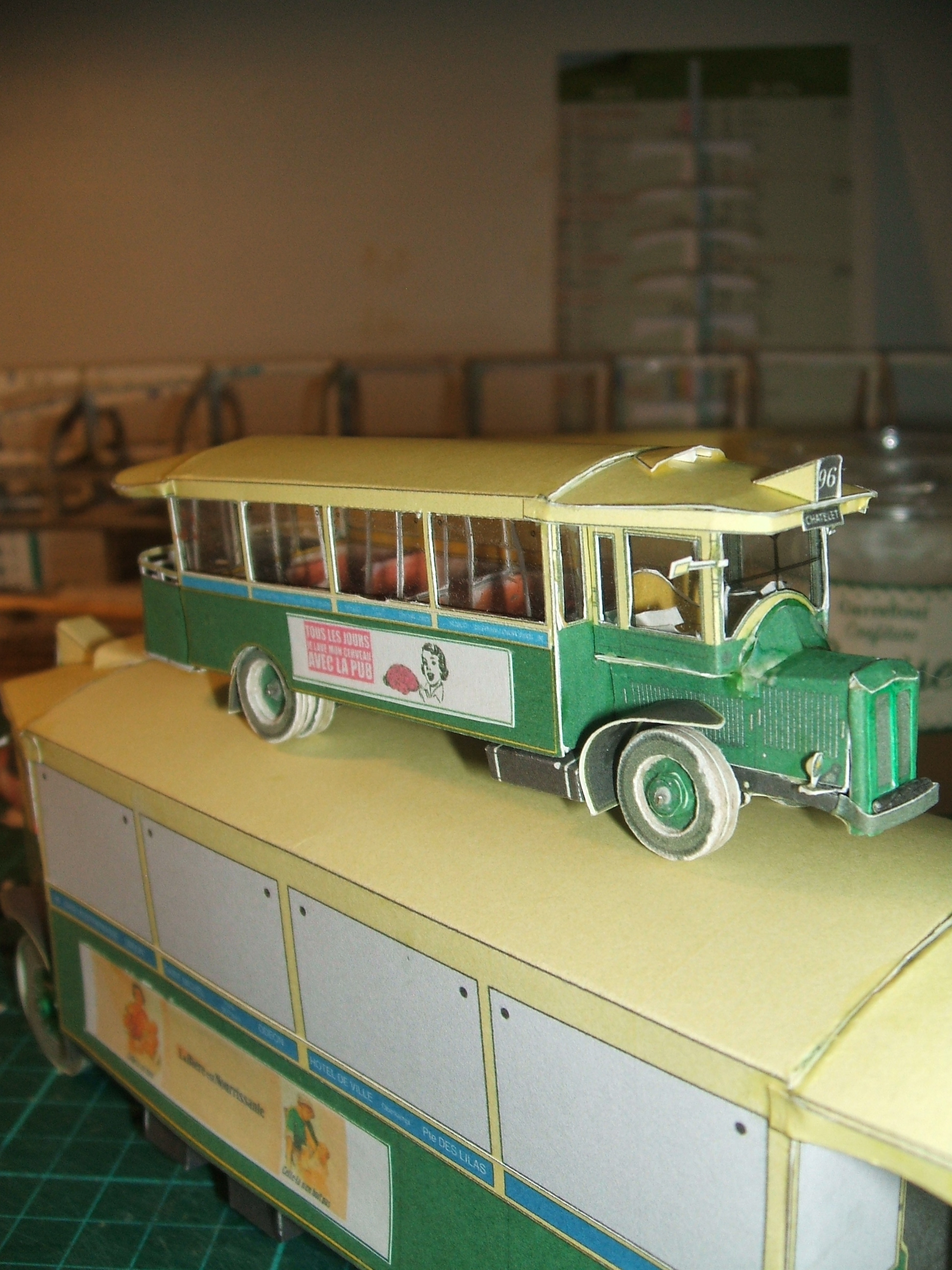 C'est pour les amateur de train. L'intérêt du modèle a baissé du fait du modèle récemment diffusé chez un éditeur connu dont j'ai oublié le nom, mais le mien ne coûte pas cher et semble bien supporter la comparaison. Le voici avec le précédent et un vieux modèle en métal blanc, monté il y a un peu plus de 35 ans (sous les couleurs des bus Lyonnais) de chez Varney (england) transport replica N° 21 Renault Paris Bus (sic..) . Je n'ai pas encore fait de retouches de peinture et puis, ce n'est qu'une expérience. Le mien est au milieu. Le modèle anglais ressemble plus à un TN4 et je trouve le mien plus beau, mais je ne suis pas objectif. À l'époque, les anglais découvraient le système métrique! (qu'ils vont s'empresser d'oublier??)
