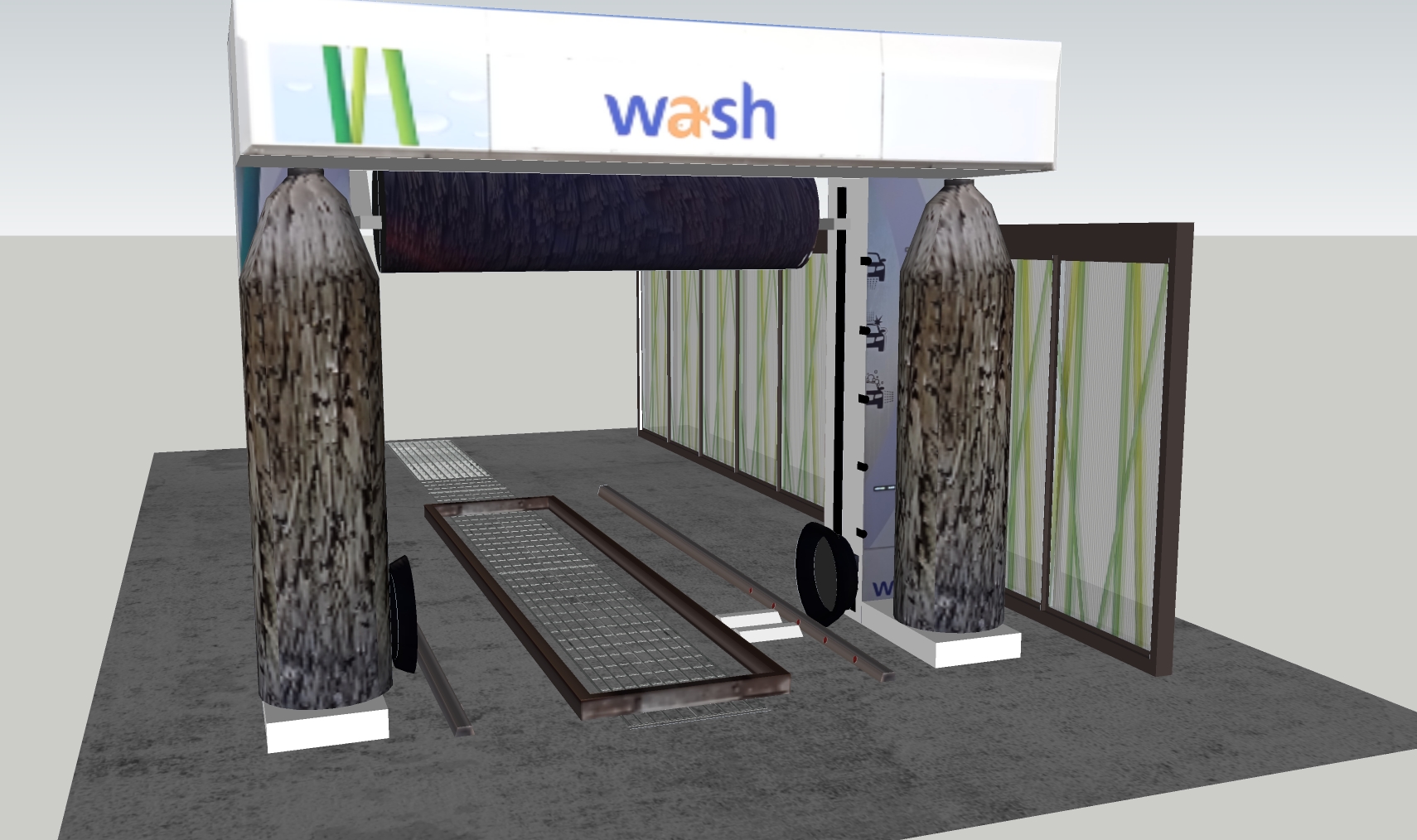 Réalisation 3d de la station de lavage a rouleaux.