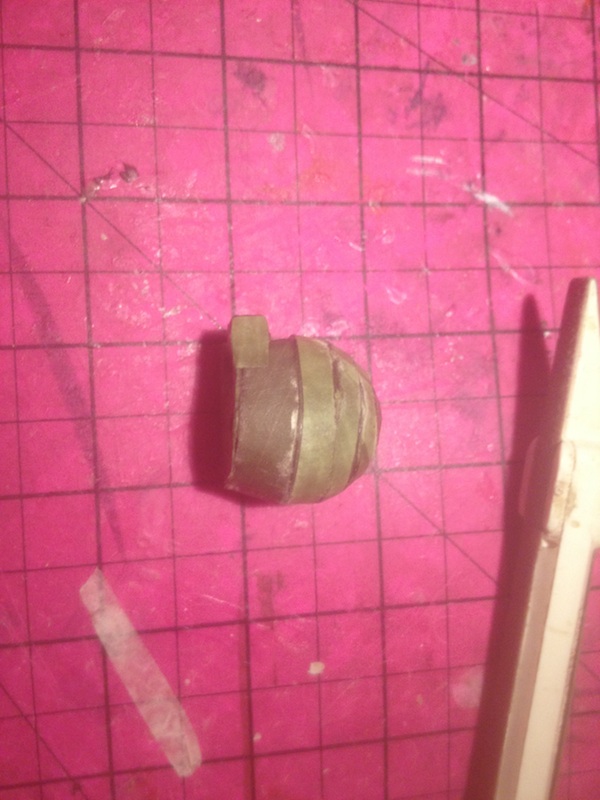 What you're looking at is two different builds. I started one, not remembering the model was on A4 paper and I didn't catch it until the helmet was sanded and prepped for texturing. FORTUNATELY, as both builds were similar, the pics for the first one will work for the second, but there is a little bit of jump.