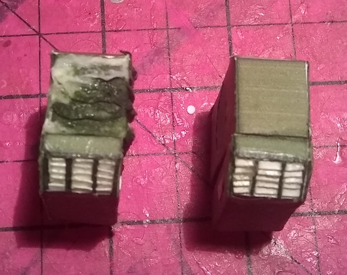 Next came sanding with some finer grit sandpaper to smooth out the texture. then a coat of olive drab paint (the original was JSDF green).