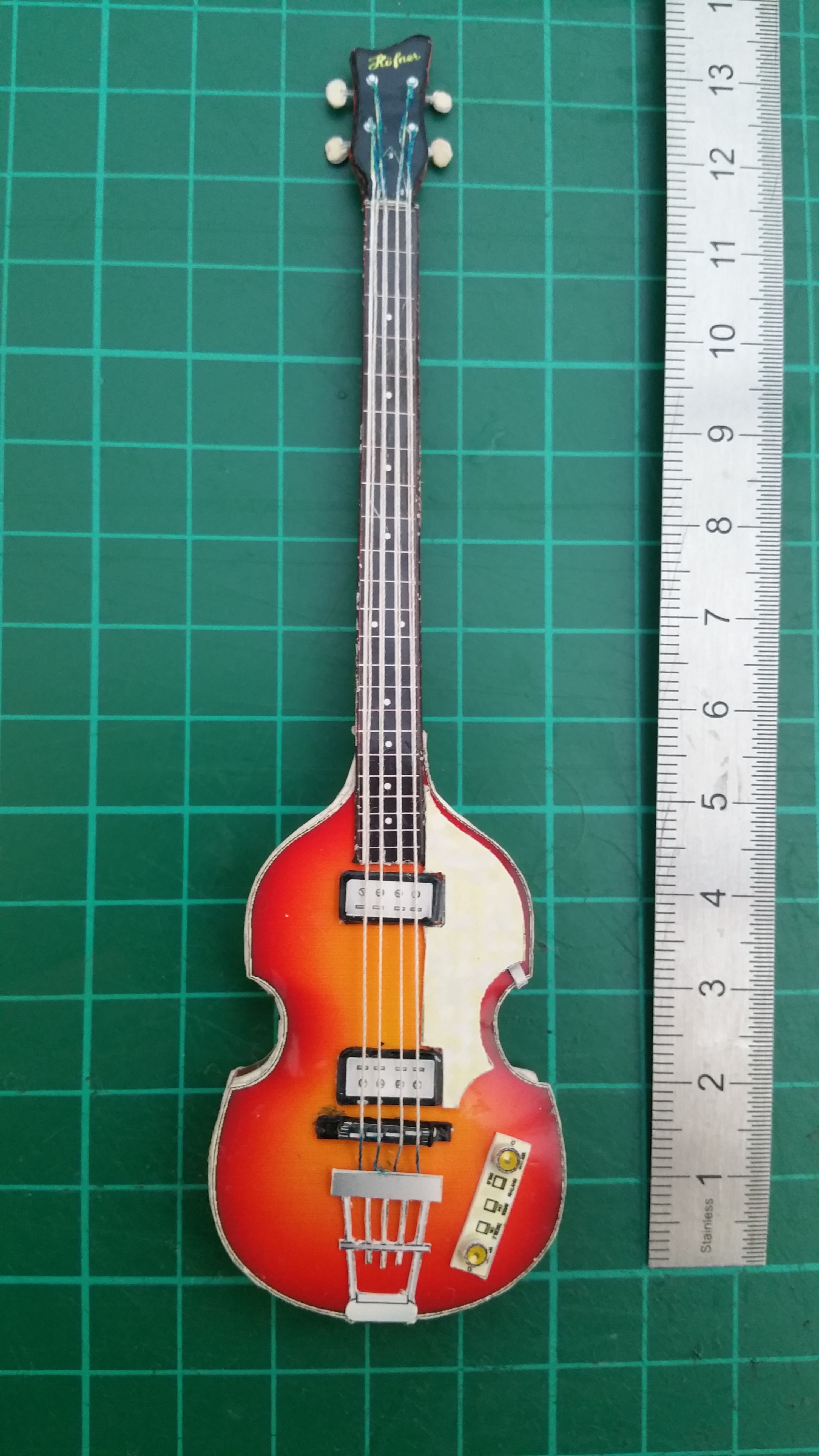 Une basse Hofner qui se trouve sur paperguitar, je l'ai réduite au 1/8 pour qu 'elle soit à l'échelle de la batterie de chez Canon que j'ai l'intention de faire quand j aurais plus d'expérience