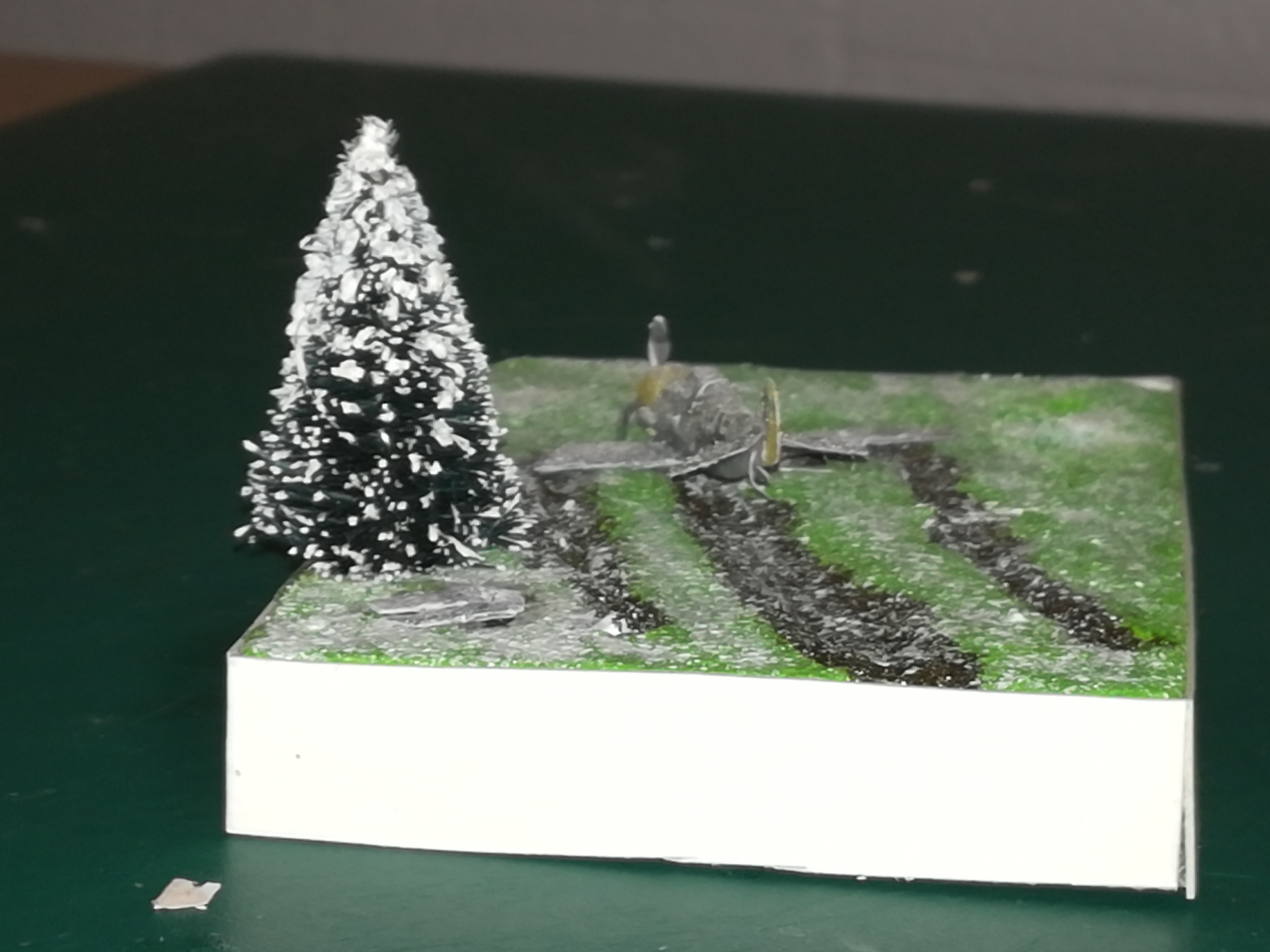 cela ne m'a pas pris beaucoup de temps mais avec le début des grèves, sa permet d'avancer un peu. Enfin bon bref, voici un me109e3 de chez prudenziati mit en scène dans un diorama de crash au moi de décembre