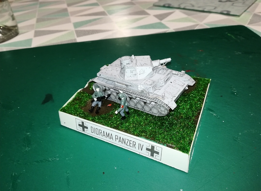 Je viens de terminer le diorama du panzer IV. Quelques photos J'ai melangé différentes matière à savoir le plastique, le carton, le papier, la peinture et l'herbe artificiel que l'on trouve dans un magasin de modélisme. Bonne journée et bon visionnage