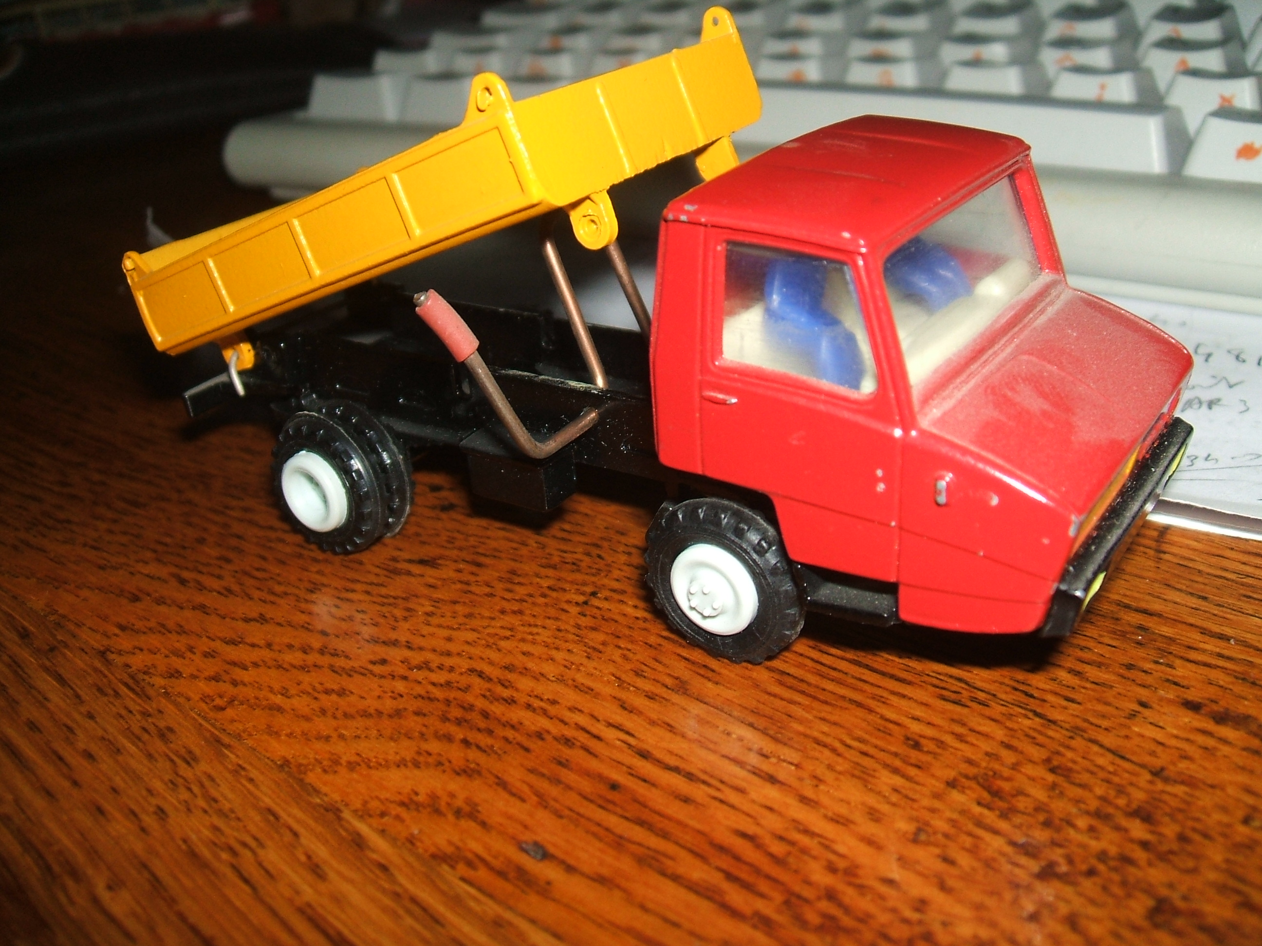 J'attends ton stradair. J'en ai un de marque FJ et je me souviens bien de la campagne de pub. On attendait dieu sait quoi, un lave linge, un réfrigérateur, puis un super T100 rapide comme un avion au prix d'une 2CV et on a vu arriver ça. Je crois me souvenir qu'il n'avait pas eu grand succès, pourtant, avec le recul, c'était une petit camion très moderne et pratique. On n'en parle pas beaucoup. Voilà le modèle, comme neuf mais pas à vendre!