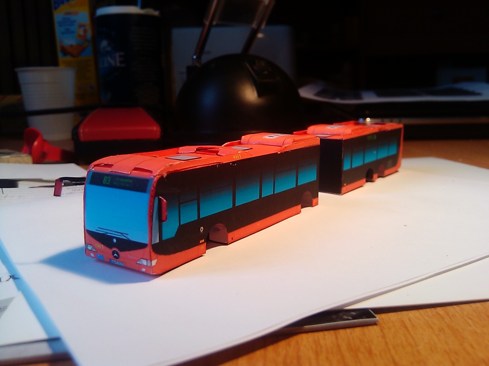 Suite à la demande d'Aurelien, je me suis "penché" sur un bus grande capacité, le Mercedes-Benz CapaCity : La difficulté pour moi est de rendre les courbes des éléments de la toiture....