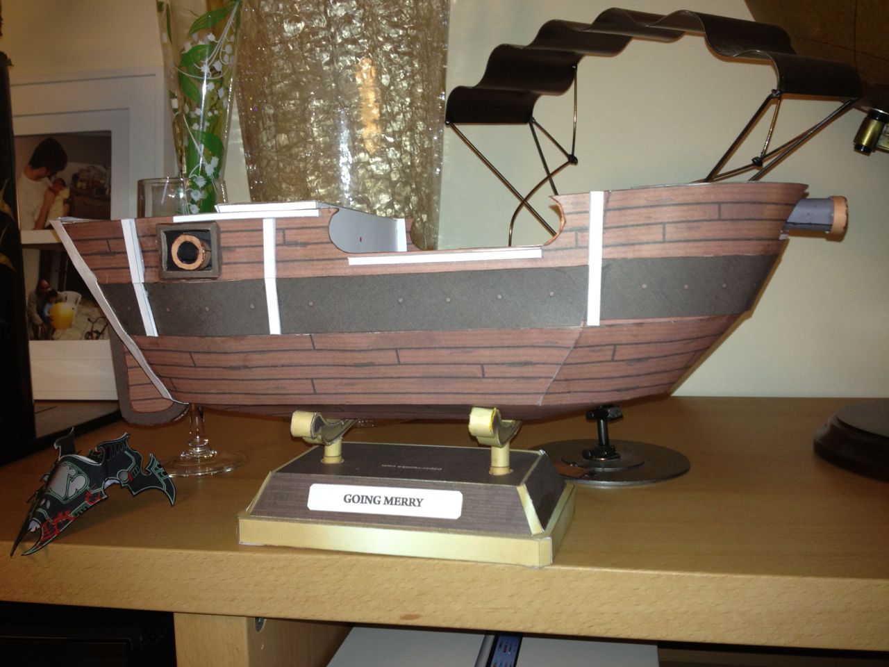 des progrès sur le going merry, j'ai construit les rambardes avant et arrière. Cela prend du temps. Le résultat laisse aussi un peu a désirer Je pense que des erreurs de montages sont en train de s'accumuler, en particulier la rambarde arrière semble trop longue.
